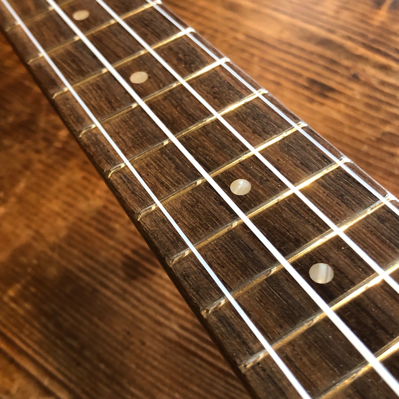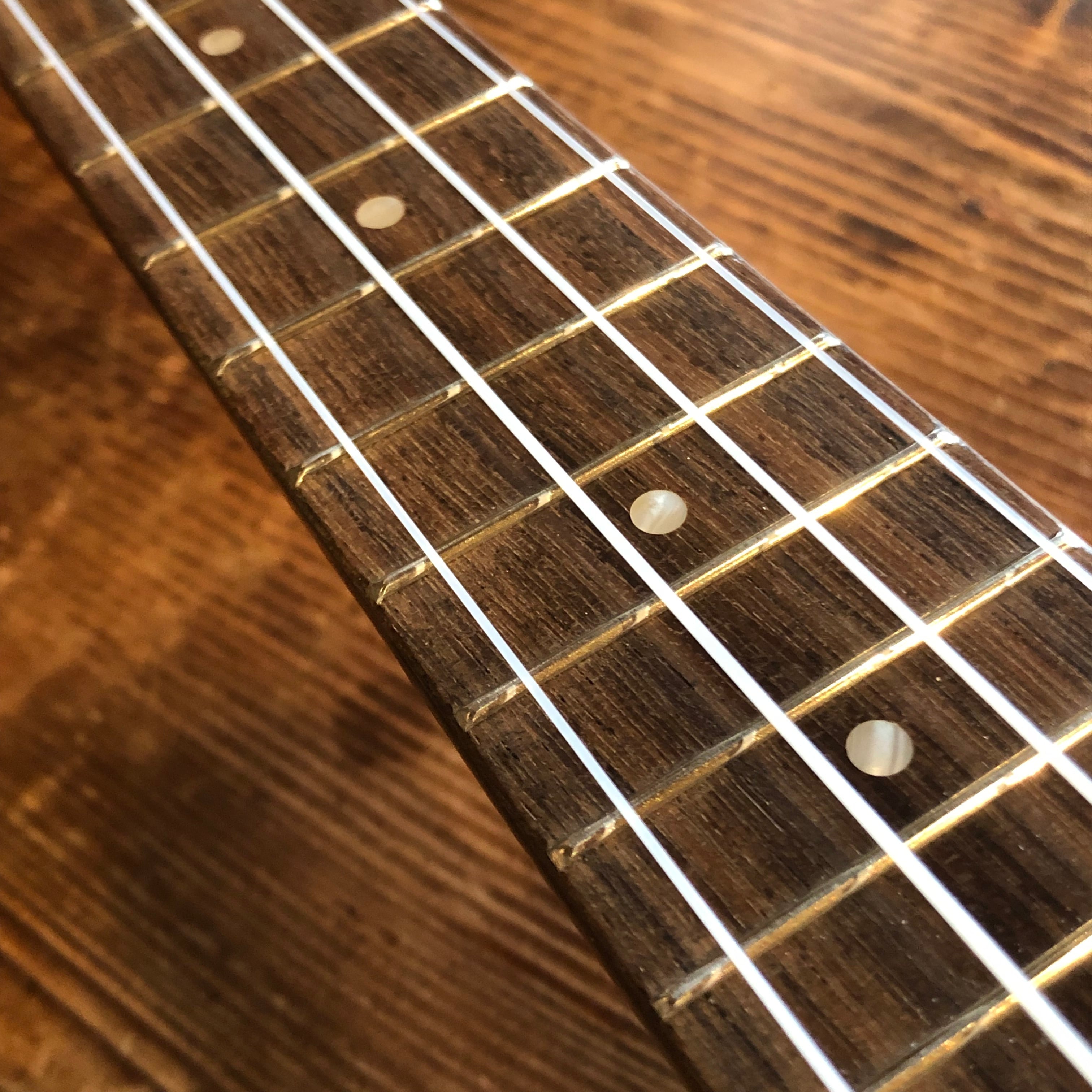 ネックはほぼまっすぐで、ナット・フレット・ブリッジ・サドルも当店でベストな状態に加工し、弦高は12フレットで約2.6mmで演奏性は抜群、全フレット問題なく、オクターブピッチのズレもほぼありません。
