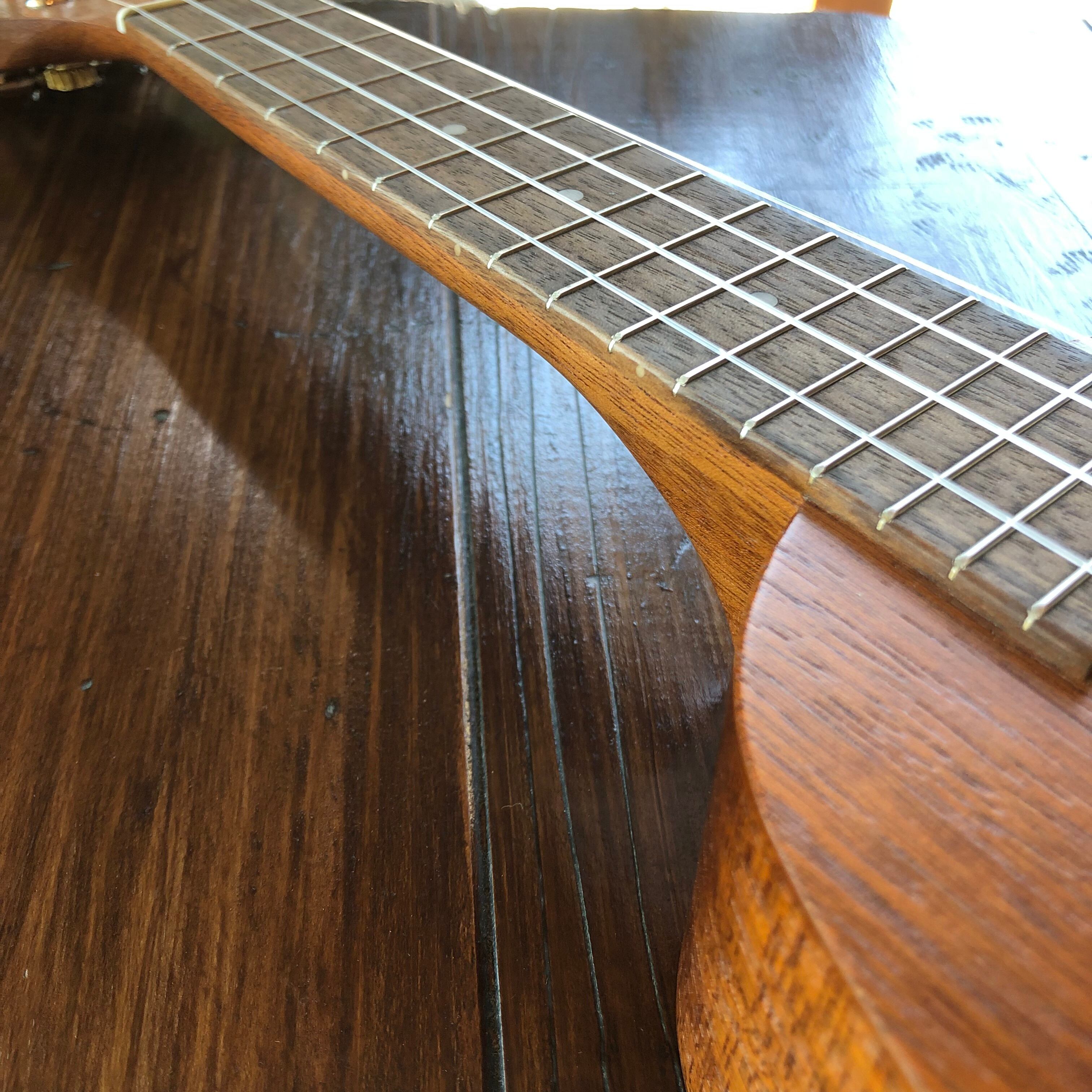 スタンダード・ウクレレ(ひょうたん型)と比べると、ボディの容積が増え若干ふくよかな響きが魅力な当モデル。