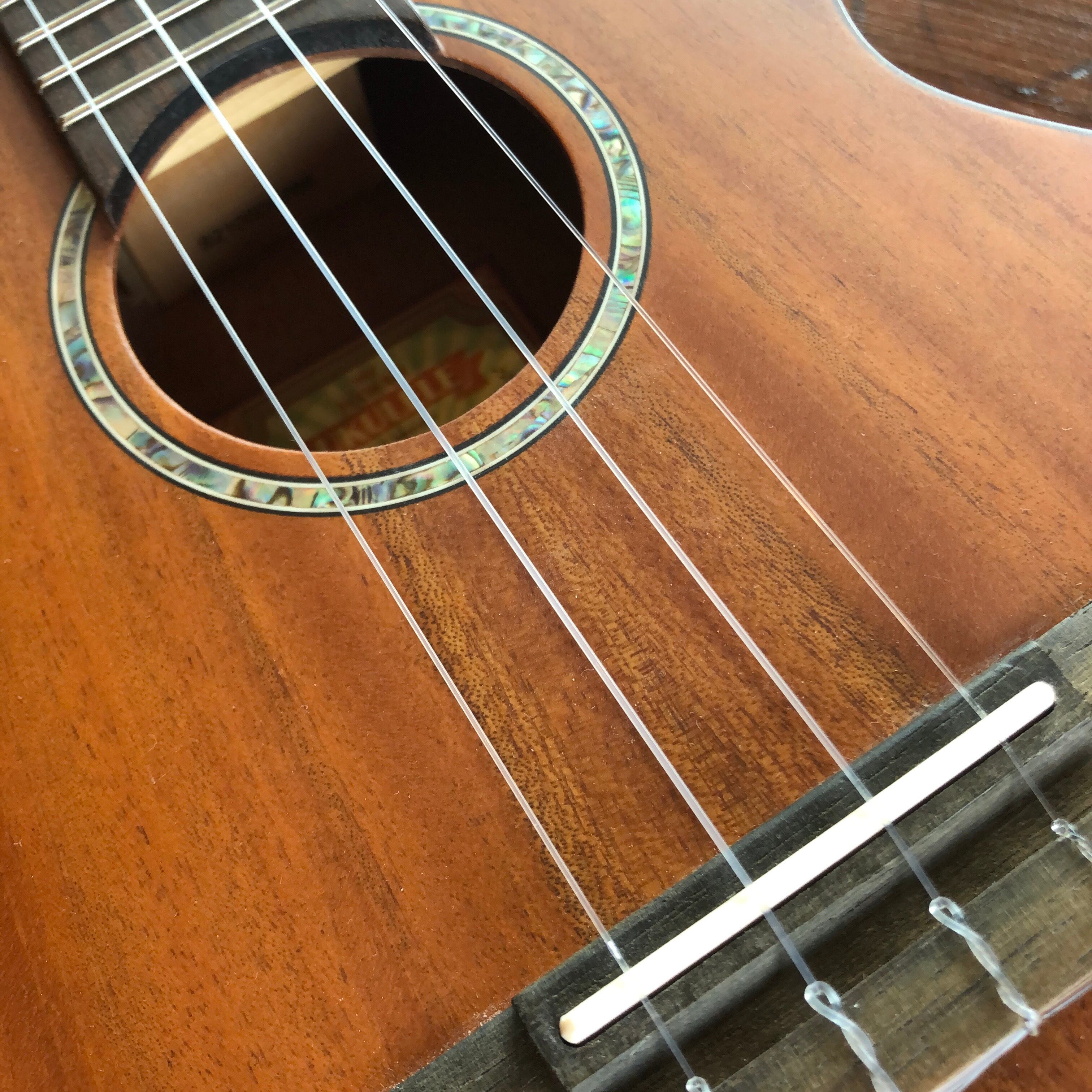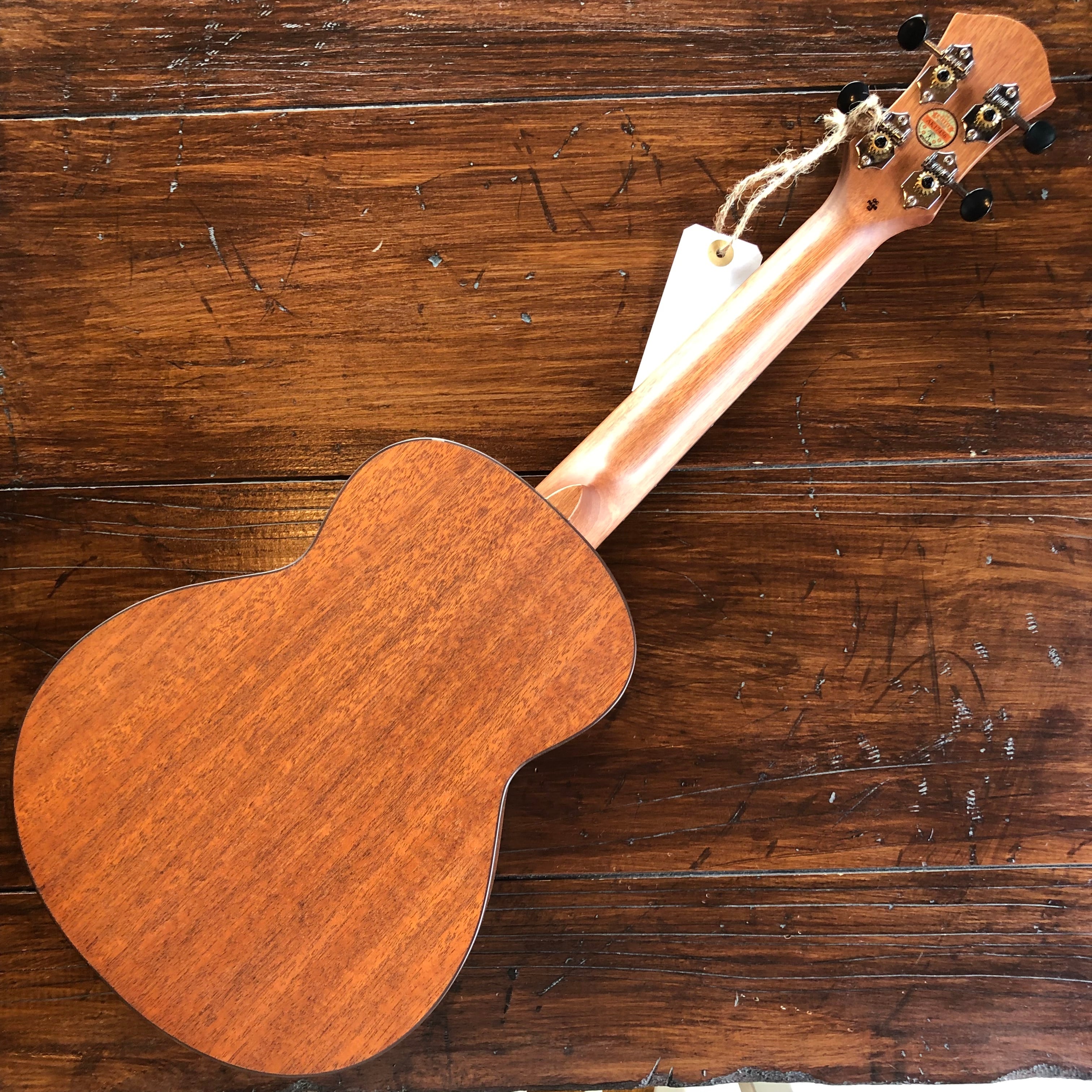こちらはハワイアンドリームシリーズのマホガニー素材を使用したベーシックなモデルです。木材本来の特徴を生かすため薄く仕上げられた塗装は、マホガニートップ単板の柔らかく温かみのあるサウンドを生かします。(定価36,300円)