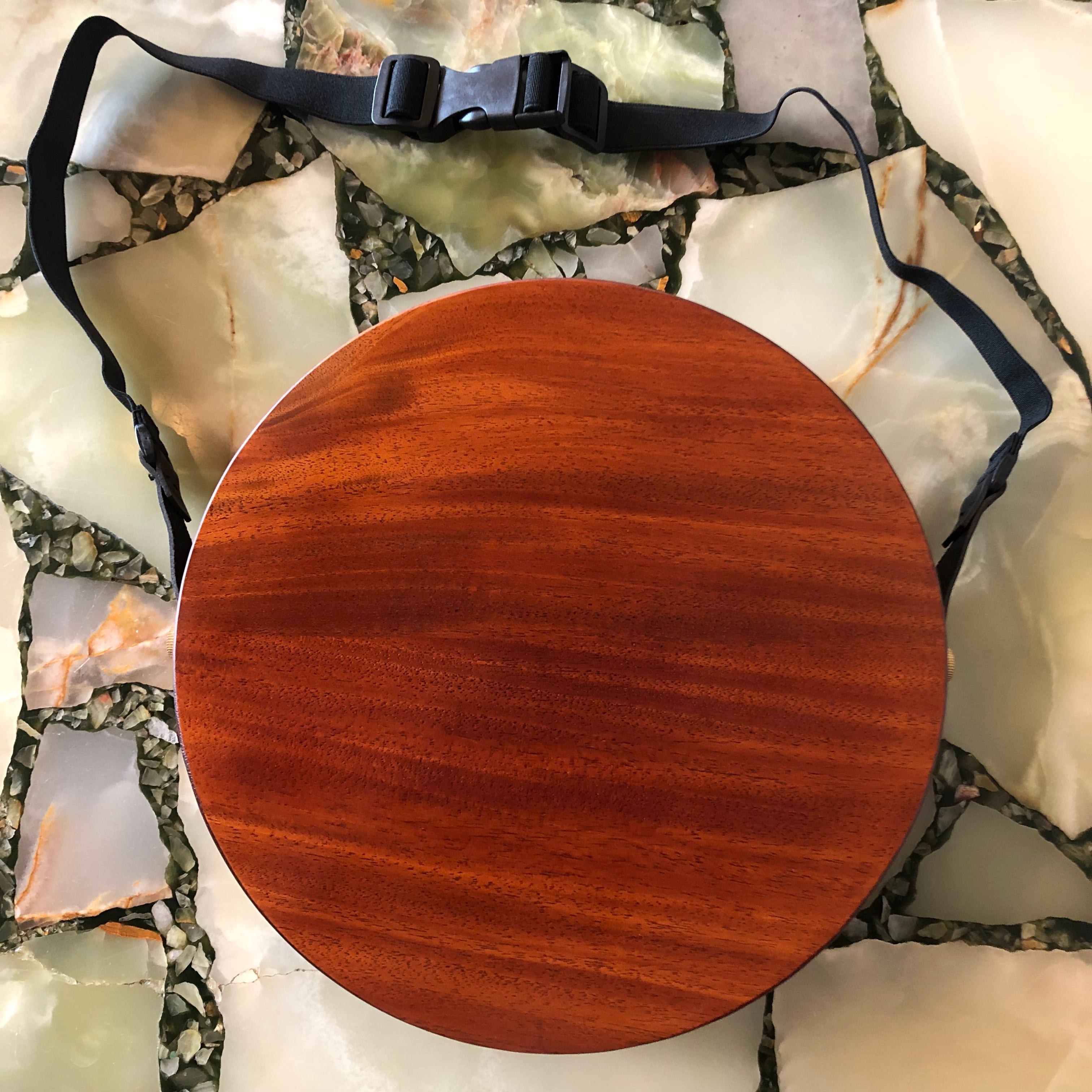 打面は直径10″(255mm)サイズでコンパクトなサイズなので膝の上でも快適に演奏でき、付属の伸縮性のあるサイズ調整可能なストラップで首から下げたり、腰に固定したりしての演奏も可能。さらに、10″を固定できるスネアスタンドにも固定が可能です。