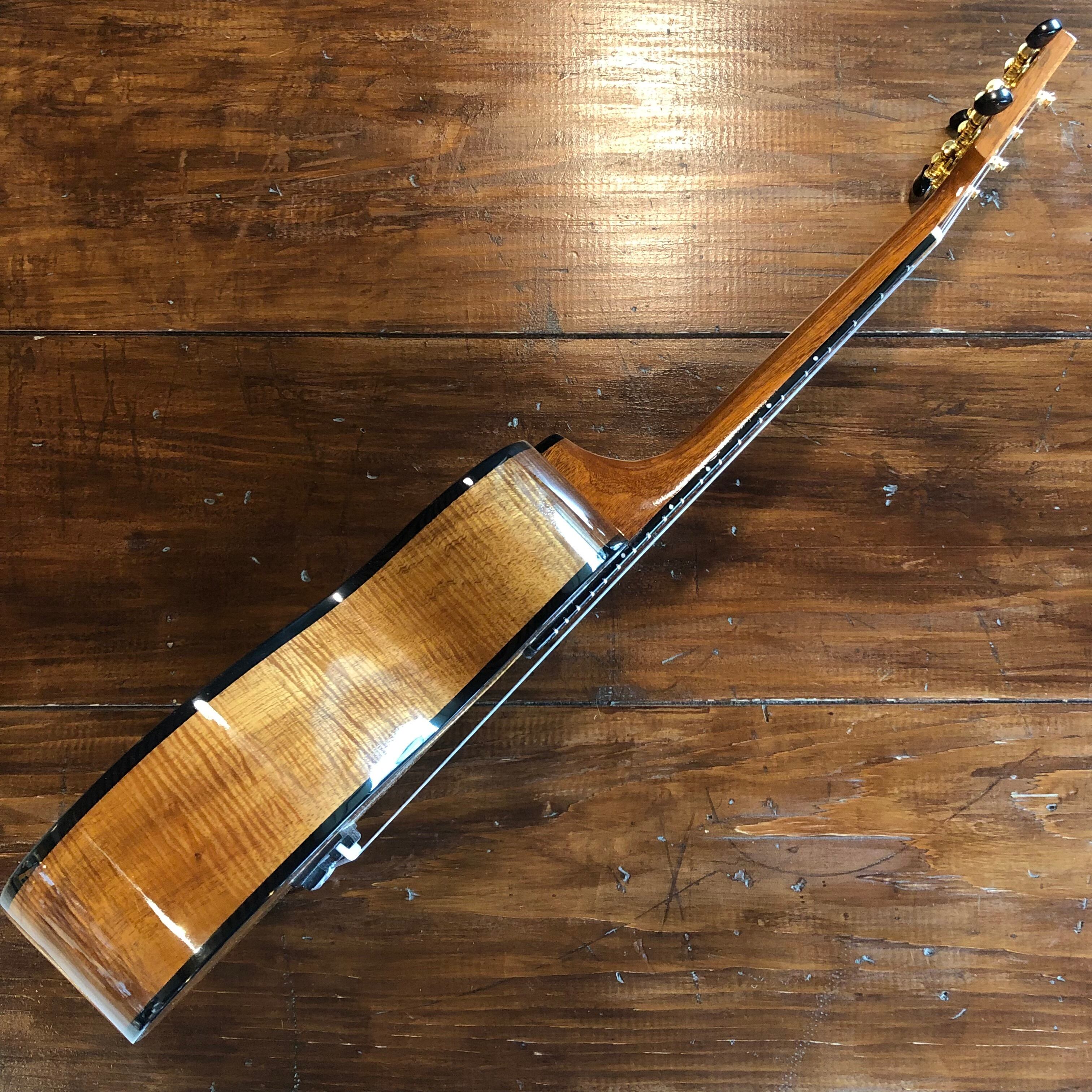 こちらのウクレレはカスタムシリーズのコンサートウクレレとなります。ボディには極上のカーリーハワイアンコアの単板を使用し、指板&ブリッジにエボニーを採用し輪郭のはっきりした立ち上がりの早い音となっております。サウンドホールとTop板の外周には、本物の鮑貝の貝殻が埋め込まれており、木目と共に煌びやかさを放っております。